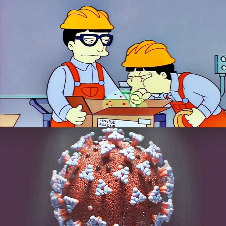 การทำนายนี้มาจากตอน "Marge in Chains" ปี 1993 ซึ่งเล่าถึงโรคระบาดที่มาจากเอเชียและแพร่กระจายในสหรัฐอเมริกา โดยเริ่มจากชายคนหนึ่งที่จามใส่กล่องพัสดุก่อนที่มันจะถูกส่งไปยังสหรัฐฯ และกลายเป็นโรคระบาดครั้งใหญ่ ซึ่งเหตุการณ์นี้คล้ายกับการระบาดของโรค Covid-19 ในปี 2020