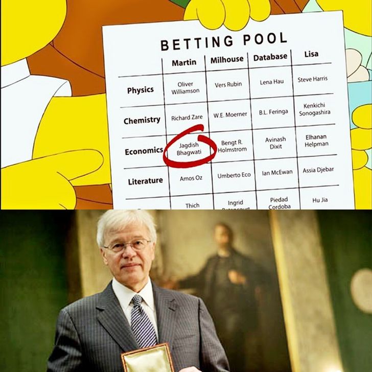 ในตอน "Elementary School Musical" ปี 2010, นักวิจัยได้ทำนายว่า "Bengt R. Holmstrom" จะได้รับรางวัลโนเบลในสาขาเศรษฐศาสตร์ ซึ่งเขาก็ได้รับรางวัลจริงๆ ในปี 2016 หลังจากที่ผ่านไป 6 ปี