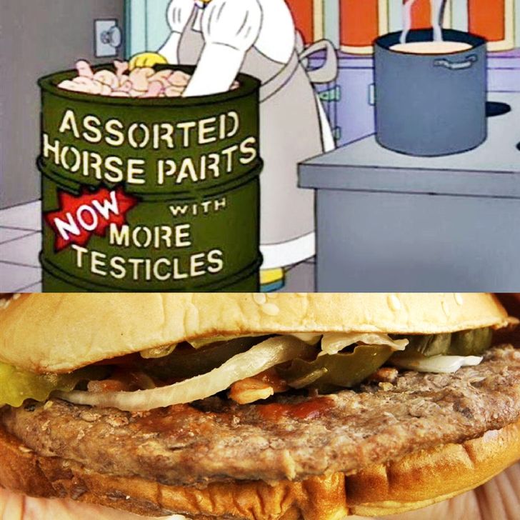 เหตุการณ์นี้มาจากตอน "Sweet Seymour Skinner’s Baadasssss Song" ปี 1994 ซึ่งมีฉากที่ผู้หญิงชื่อดอนิสใช้เนื้อม้าเป็นส่วนผสมในการทำอาหารให้กับนักเรียนในโรงเรียนสปริงฟิลด์ ต่อมาในปี 2013 มีการพบการปนเปื้อนของเนื้อม้าในแฮมเบอร์เกอร์ถึง 1 ใน 3 ของยุโรป ซึ่งการบริโภคเนื้อม้าก็ไม่อันตรายต่อร่างกาย แต่อาจทำให้เกิดข้อสงสัยเกี่ยวกับการปนเปื้อนของสารอื่นๆ ในอาหาร