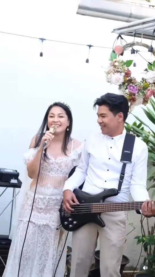 และในวันนี้ ภาพความทรงจำดังกล่าวก็เหมือนได้กลับมาอีกครั้ง เมื่อเจ้าสาวยังคงจับไมค์ร้องเพลงเช่นเดิม ขณะที่มือเบสคนเดิมที่เคยอยู่ด้านหลังบนเวที ได้ขยับมาเล่นดนตรีเคียงข้างในฐานะเจ้าบ่าว