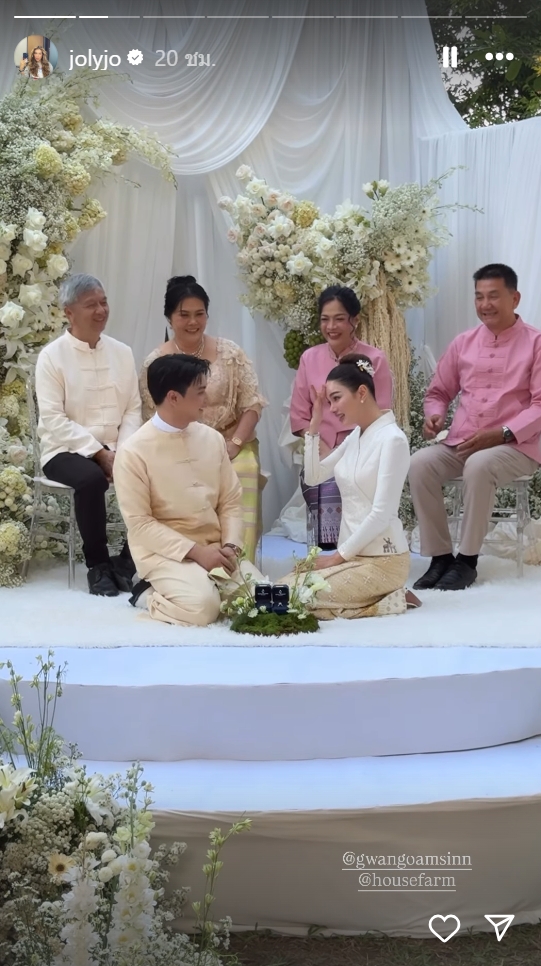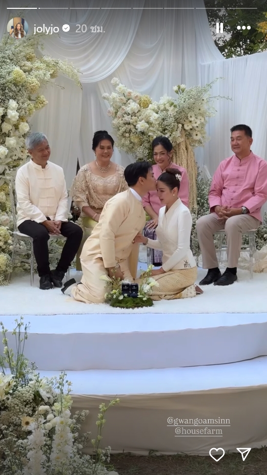 หลังจากที่สร้างเซอร์ไพรส์คุกเข่าขอแต่งงานไปเมื่อกลางปีที่ผ่านมา พร้อมแหวนเพชรเม็ดโตที่ทำเอาหลายคนอิจฉา ทั้งคู่ที่คบหาดูใจกันมานานกว่า 4 ปี ก็ได้ตัดสินใจเริ่มต้นชีวิตคู่ด้วยพิธีที่เรียบง่ายแต่เปี่ยมไปด้วยความหมาย โดยเลือกจัดงานในรูปแบบวัฒนธรรมทางเหนือเพื่อเป็นเกียรติแก่ครอบครัวเจ้าบ่าว