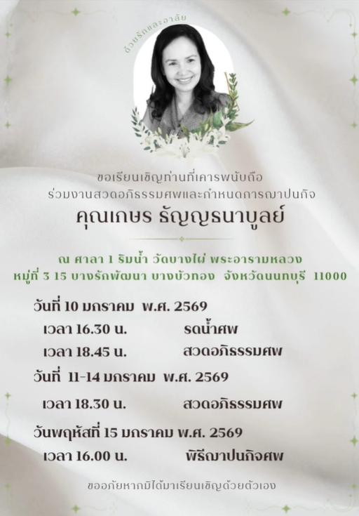 "ขอบคุณพี่มดพี่หม่ำ พี่โน๊ต.พี่ต้อย พ่อหนอด.และเพื่อนๆๆทุกคนที่มาในงานของพี่สาวเราและที่ส่งกำลังใจมาให้นะคะขอยคุณจากใจจริงๆๆกราบลาพี่ติ้กเป็นครั้งสุดท้าย"