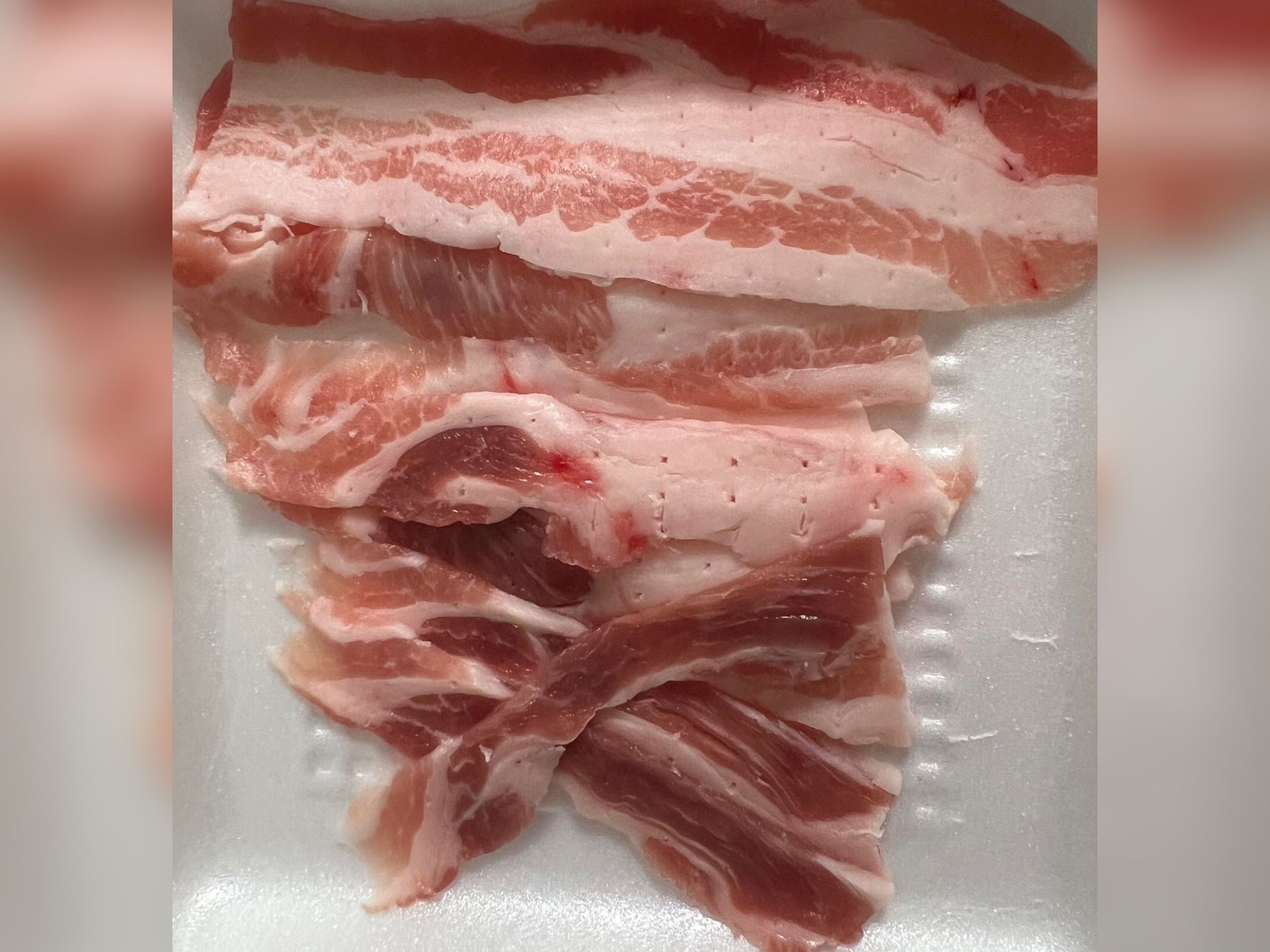 จากภายนอก แพ็คเนื้อหมูดูสวยงามน่าทาน เนื้อแดงเรียงตัวสวย แต่พอกลับถึงบ้านและแกะพลาสติกออก ความจริงก็ปรากฏ! เพราะ "เนื้อหมูชั้นล่างสุด" ที่ถูกซ่อนอยู่ แทบจะไม่มีเนื้อแดงเลย มีแต่ "มันหมูขาวโพลน" ล้วนๆ