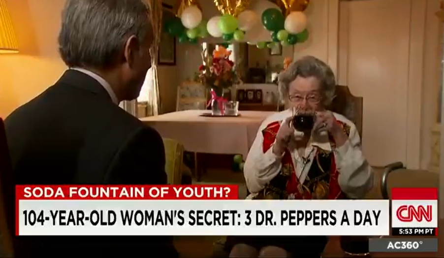 แต่สำหรับคุณยาย อลิซาเบธ ซัลลิแวน (Elizabeth Sullivan) คำเตือนเหล่านั้นกลับไม่มีความหมายใด ๆ เลย จากบทสัมภาษณ์ของสำนักข่าว CNN คุณยายผู้โด่งดังจากการดื่มน้ำอัดลมยี่ห้อ ดร.เปปเปอร์ (Dr Pepper) วันละ 3 กระป๋องจนถึงวัย 100 ปี ได้ยกความดีความชอบให้เครื่องดื่มชนิดนี้ว่าเป็นเคล็ดลับที่ทำให้เธอมีอายุยืนยาว