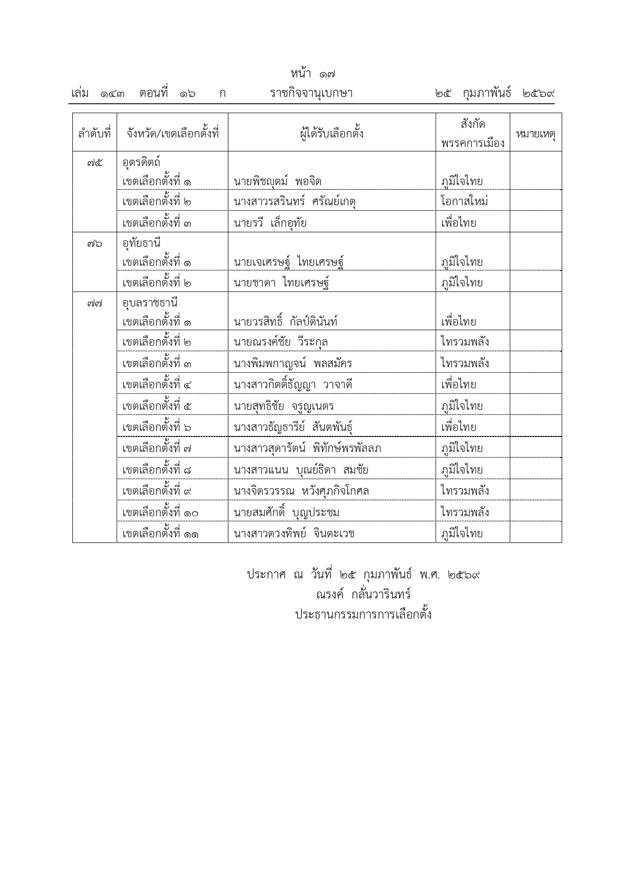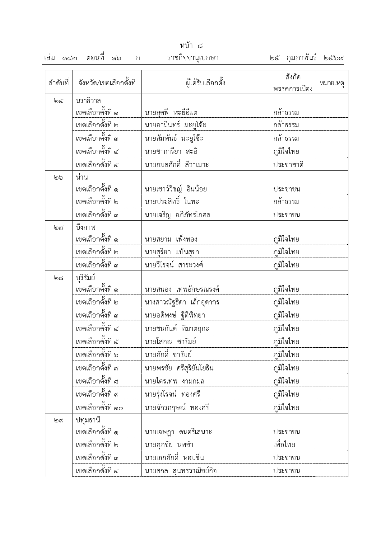 ราชกิจจานุเบกษา ประกาศผลเลือกตั้ง สส.เขต 396 คน เช็กรายชื่อทั้งหมดที่นี่ราชกิจจานุเบกษา เผยแพร่ประกาศคณะกรรมการการเลือกตั้ง (กกต.) ผลการเลือกตั้ง สส.แบบแบ่งเขตเลือกตั้ง จำนวน 396 คน