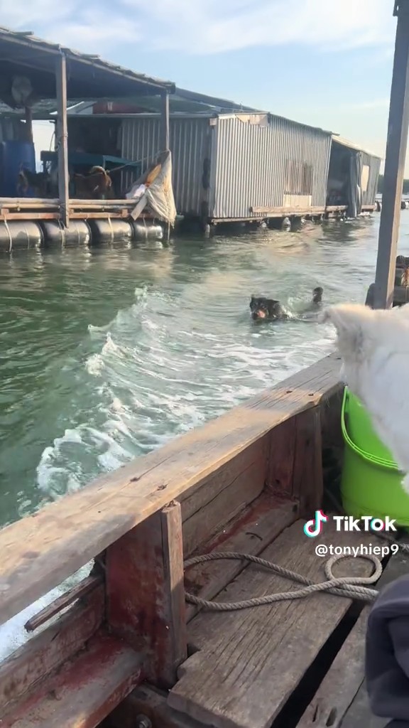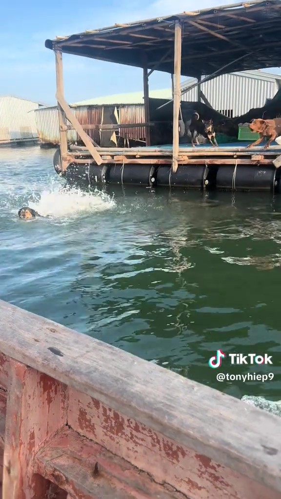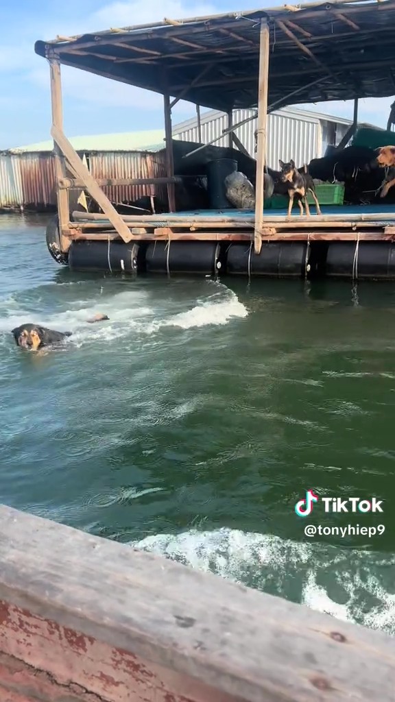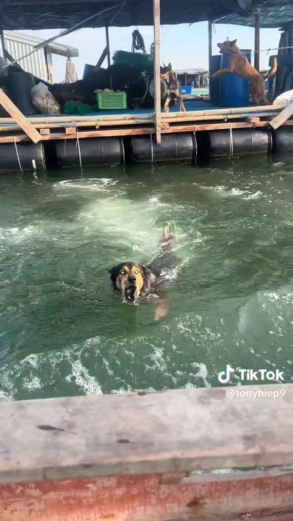 หมาบ้านอยู่กลางน้ำ ไร้ถนนให้วิ่งกวดมอเตอร์ไซค์เหมือนหมาหน้าปากซอย พี่แกเลยขออัปเกรดสกิลเป็น 'พะยูนพิฆาต' พุ่งหลาวลงน้ำสับตีนแตกไล่กวดเรือแทน! งานนี้บอกเลยว่า... ถ้าเครื่องเรือดับ มีหนาวแน่นอน!