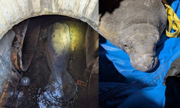 ระทึกช่วยชีวิต "พะยูนหางกลม" หนัก 186 กก. ติดท่อระบายน้ำที่ฟลอริดา