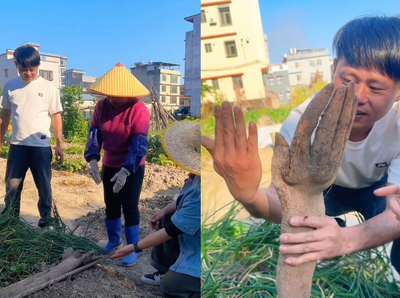 กลายเป็นกระแสไวรัลที่สร้างความฮือฮาในโลกออนไลน์อย่างรวดเร็ว เมื่อชายชาวสวนรายหนึ่งขุดพบพืชรูปร่างประหลาดในสวนของตัวเอง โดยลักษณะของมันคล้ายกับ “มือมนุษย์” จนน่าขนลุก ซึ่งเป็นลักษณะที่หาได้ยาก จนทำให้เจ้าของสวนถึงกับตกใจ เพราะไม่เคยเห็นมาก่อน ก่อนที่ภาพดังกล่าวจะถูกแชร์ต่อและกลายเป็นที่พูดถึงในวงกว้าง