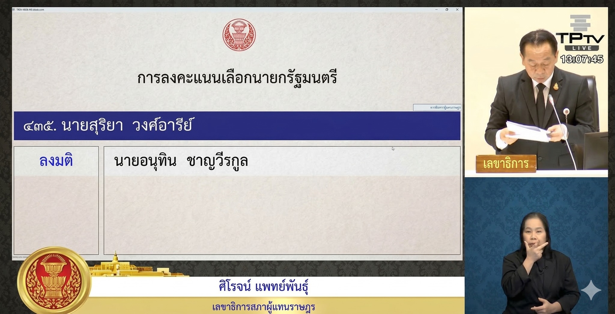 สิ่งที่สร้างความตกตะลึงคือการปรากฏชื่อของ นายสุริยา วงศ์อารีย์ สส.อุดรธานี เขต 7 พรรคประชาชน เป็นเพียงหนึ่งเดียวของพรรคที่ลงคะแนนเห็นชอบให้นายอนุทินเป็นนายกรัฐมนตรี ซึ่งเป็นการโหวตสวนมติพรรคอย่างชัดเจน ท่ามกลางกระแสข่าวลือเรื่อง "งูเห่า" ในโซนภาคอีสานที่มีมาอย่างต่อเนื่องก่อนวันลงคะแนน