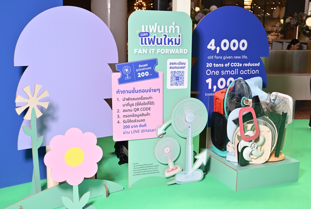 2. โซน ‘Fan It Forward’: พื้นที่ที่เปิดให้ผู้ร่วมงานนำพัดลมเก่ายี่ห้อใดก็ได้ (รับเฉพาะพัดลมที่ไม่มีแบตเตอรี่) เข้าสู่กระบวนการรีไซเคิลครบวงจรของฮาตาริ พร้อมแลกรับเวาเชอร์มูลค่า 200 บาท สำหรับซื้อผลิตภัณฑ์ทางเว็บไซต์ www.hatari.co.th ภายใน 19 มีนาคม – 31 ธันวาคม 2569