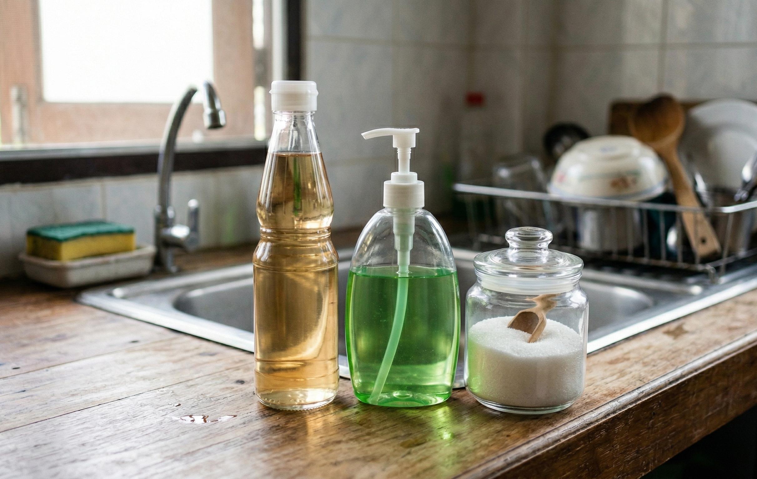 หลักการของวิธีนี้คือการใช้กลิ่นเปรี้ยวจากน้ำส้มสายชูและความหวานจากน้ำตาลเป็นตัวล่อแมลง เมื่อแมลงบินมาเกาะบนผิวของเหลว น้ำยาล้างจานจะช่วยลดแรงตึงผิว ทำให้แมลงไม่สามารถลอยตัวและจมน้ำในที่สุด