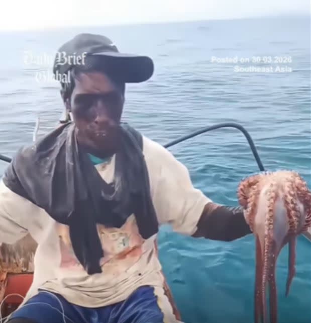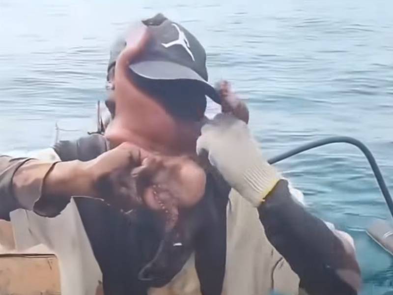 คลิปสยอง! ปลาหมึกยักษ์ "ดูดหน้า" ชาวประมงหายใจไม่ออก ช็อก ดึงออกมาผิวเปลี่ยนสี!!ช็อกทั้งโซเชียล ปลาหมึกยักษ์รัดหน้าไม่ปล่อย ชายแทบหายใจไม่ออก