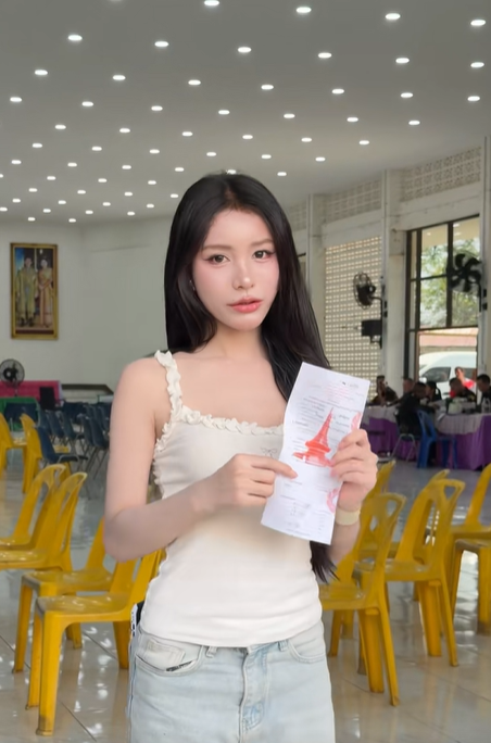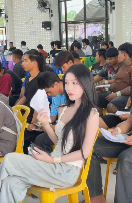 เธอถือเอกสารสำคัญทางทหาร (สด.9) อยู่ภายในสถานที่ตรวจเลือก ซึ่งทันทีที่ปรากฏตัว ก็กลายเป็นจุดสนใจของทั้งเจ้าหน้าที่และผู้ร่วมงานในทันที
