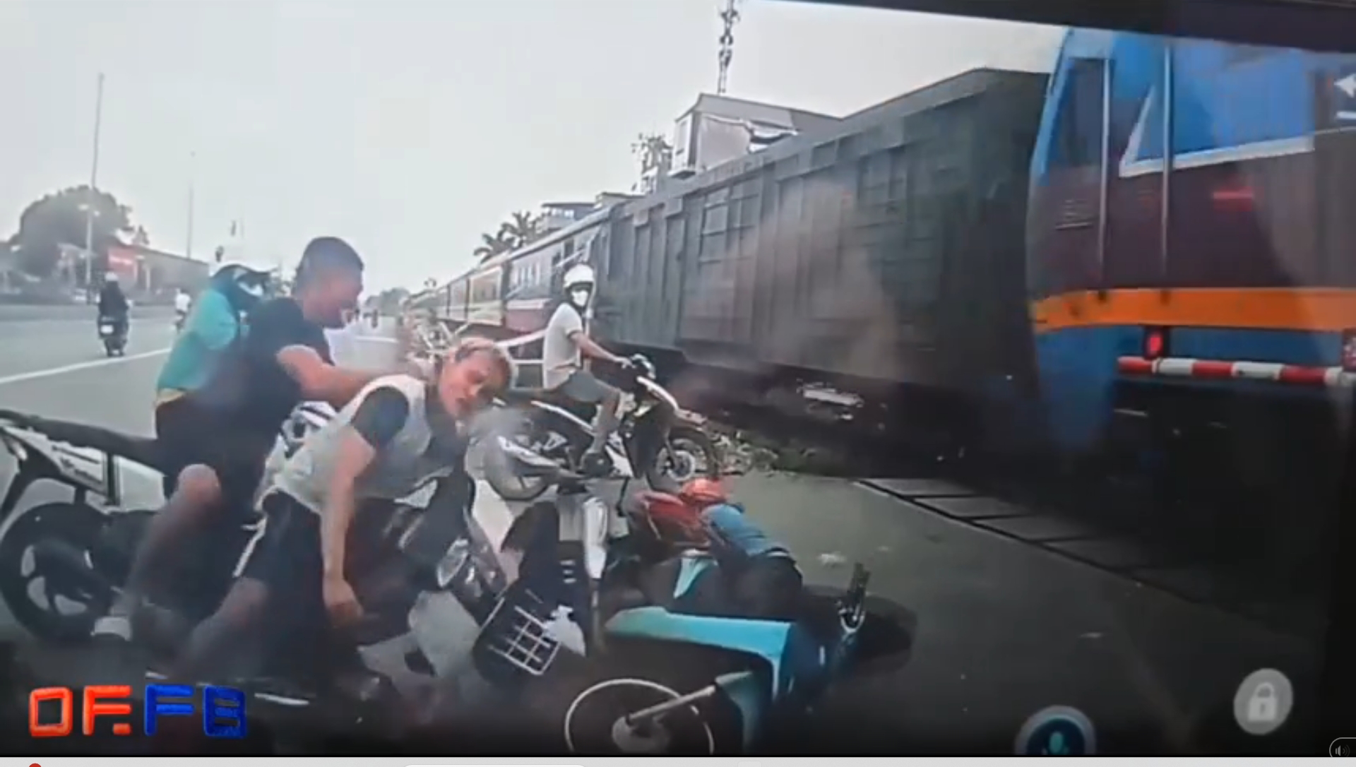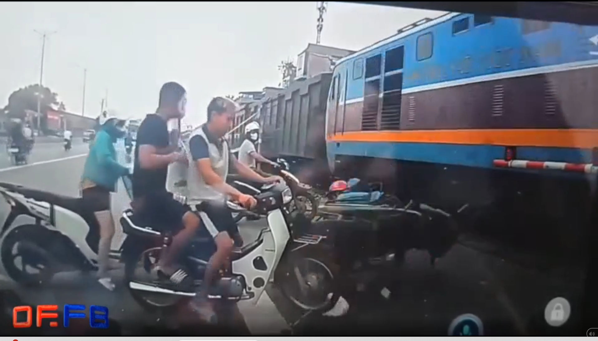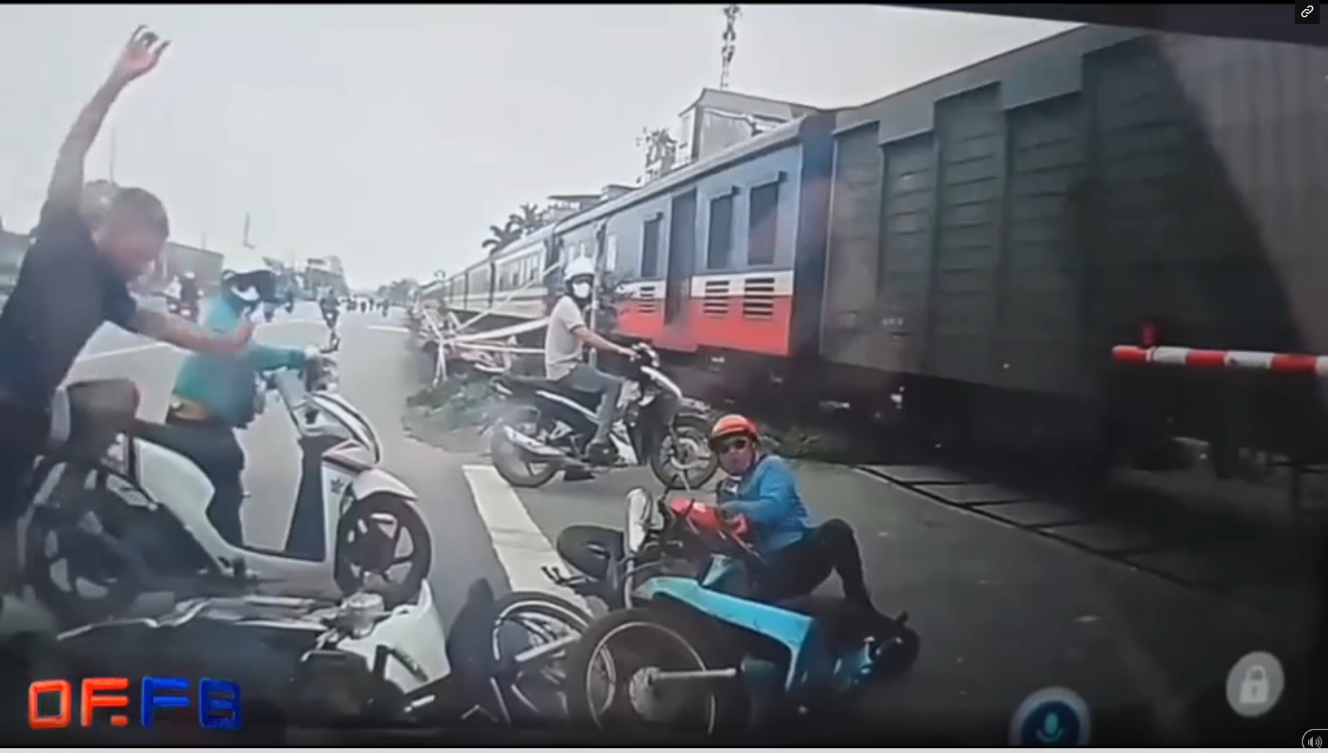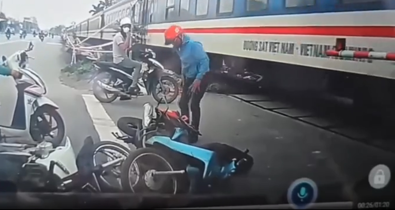 (คลิป) ลุงรอไม่เป็น บิดมอไซค์ฯ "ปาดหน้ารถไฟ" มุดราวกั้นไปเจ็บ แถมพาคนอื่นซวยด้วย!!เสี้ยววินาทีเสี่ยงชีวิต ชายข้ามรางทั้งที่ไม้กั้นปิดแล้ว (มีคลิป)