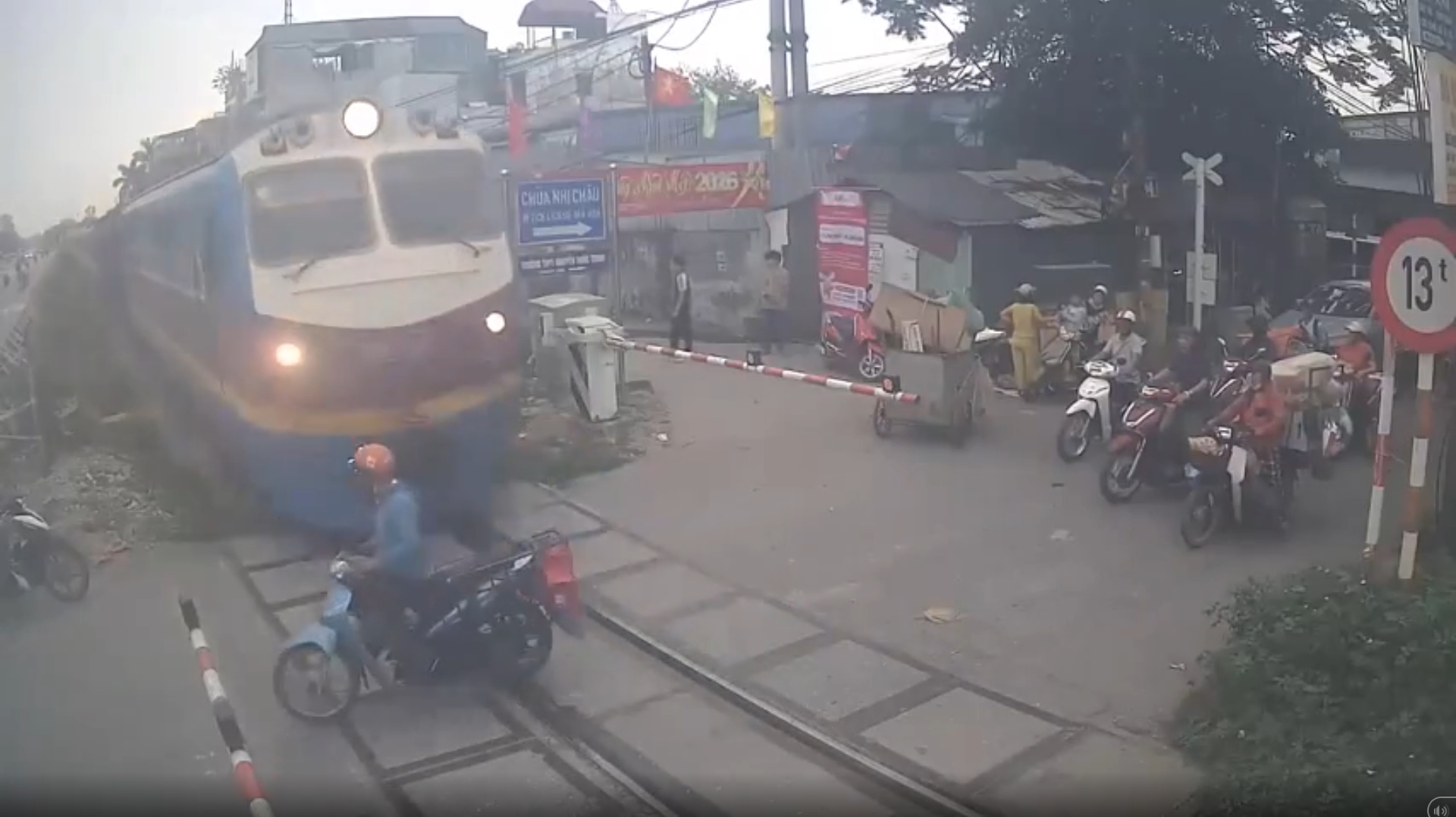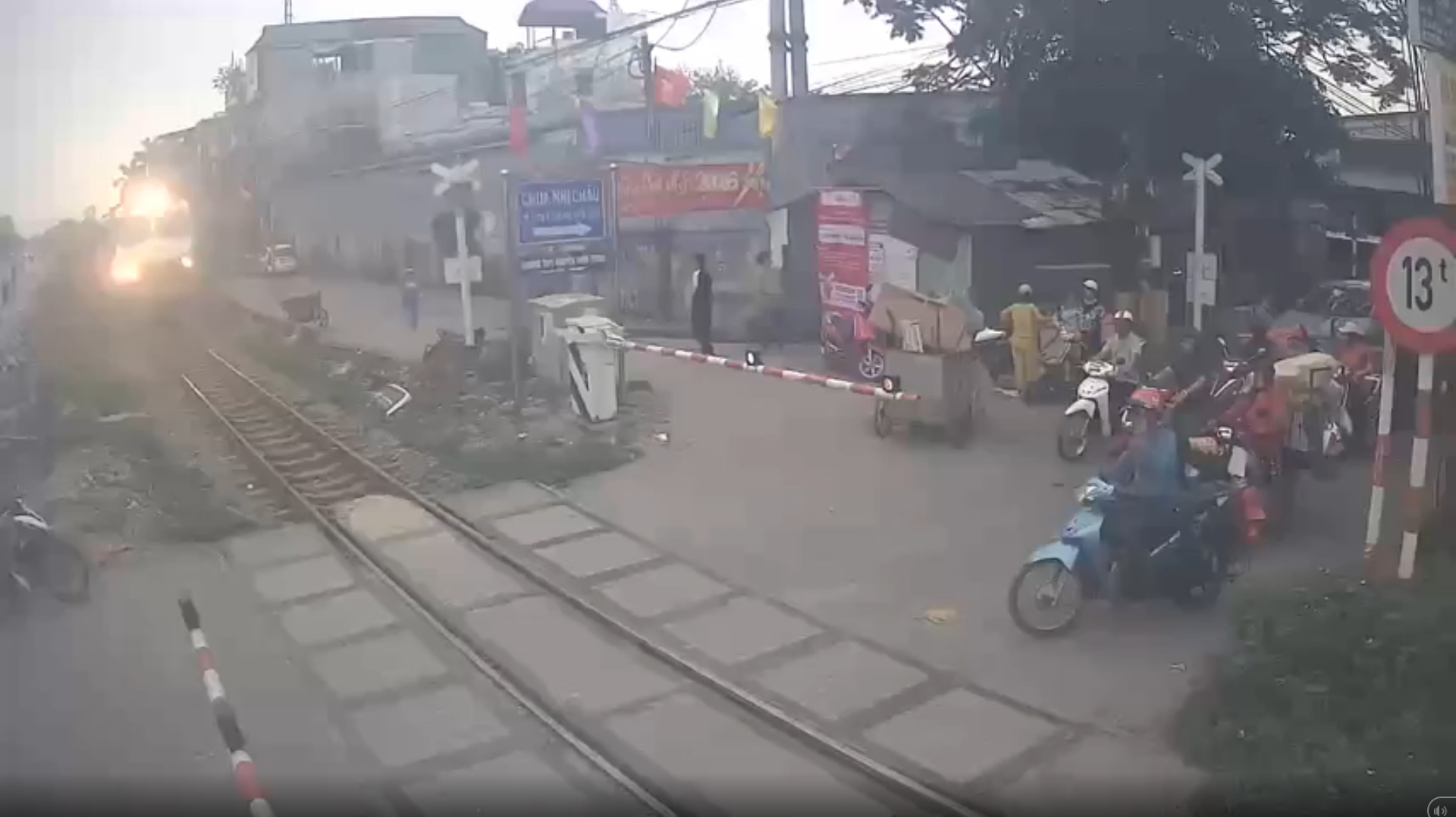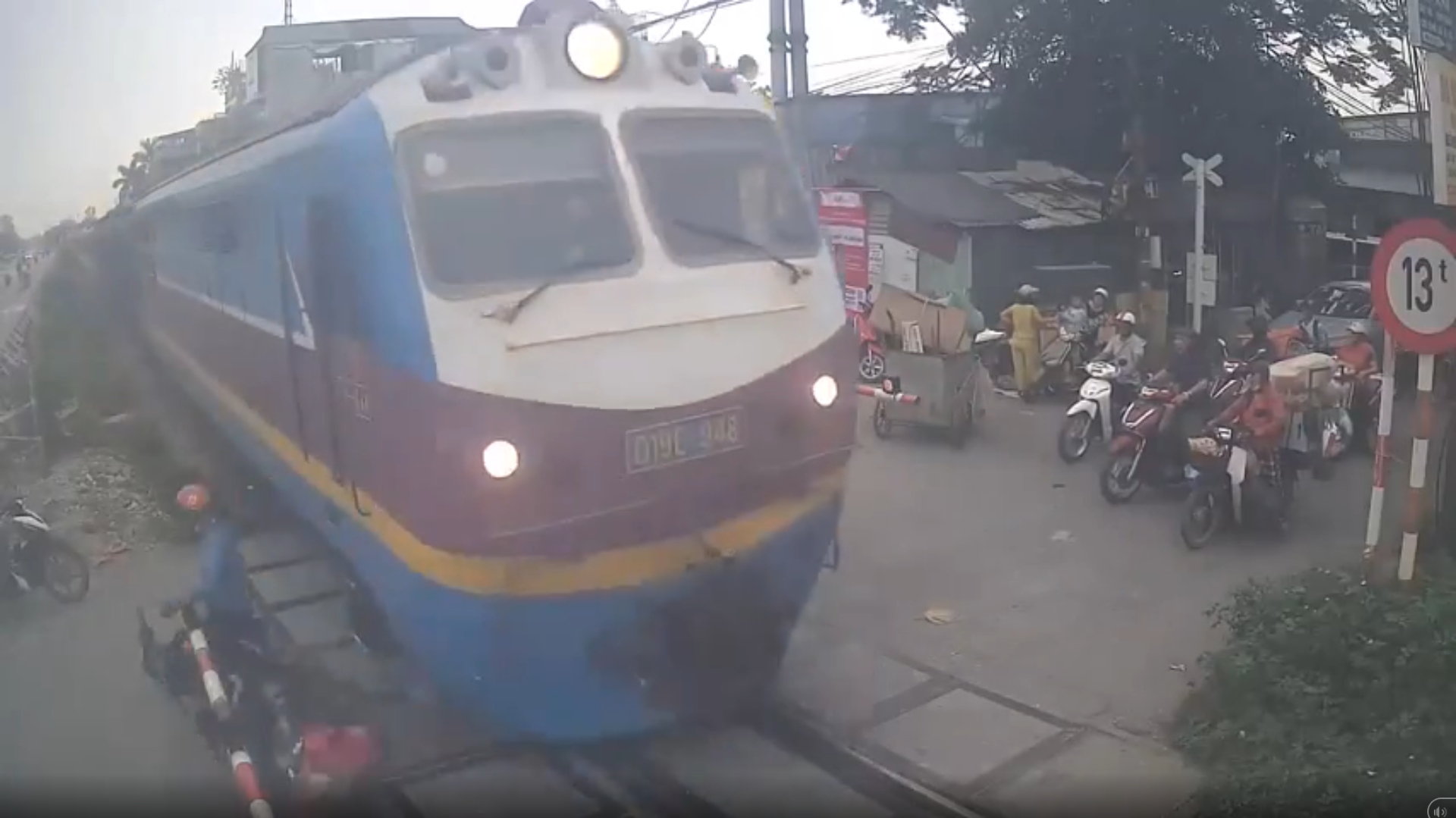 (คลิป) ลุงรอไม่เป็น บิดมอไซค์ฯ "ปาดหน้ารถไฟ" มุดราวกั้นไปเจ็บ แถมพาคนอื่นซวยด้วย!!เสี้ยววินาทีเสี่ยงชีวิต ชายข้ามรางทั้งที่ไม้กั้นปิดแล้ว (มีคลิป)