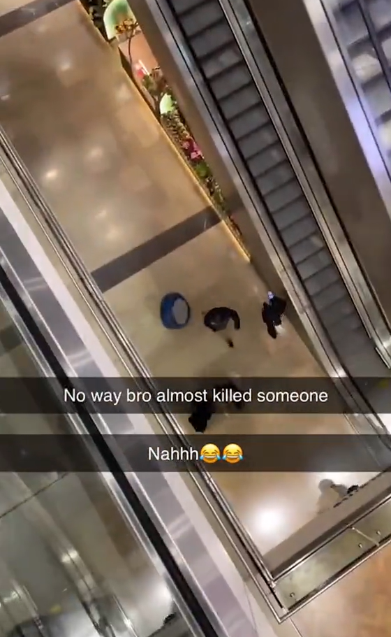 เหตุการณ์ดังกล่าวถูกเผยแพร่เป็นคลิปวิดีโอในโลกออนไลน์ โดยผู้ก่อเหตุเป็นคนถ่ายภาพ ขณะที่เพื่อนวัย 16 ปี โยนเก้าอี้สีน้ำเงินน้ำหนักกว่า 15 กิโลกรัม ลงมาจากความสูงประมาณ 50 ฟุต