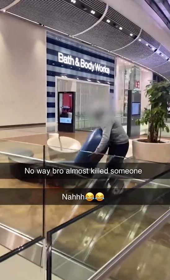 เหตุการณ์สุดอันตรายที่เกือบกลายเป็นโศกนาฏกรรม เกิดขึ้นภายในห้างสรรพสินค้าเวสต์ฟิลด์ ย่านลอนดอนตะวันออก เมื่อกลุ่มวัยรุ่นก่อเหตุคึกคะนองด้วยการโยนเก้าอี้จากที่สูงลงมายังชั้นล่าง ท่ามกลางผู้คนจำนวนมาก
