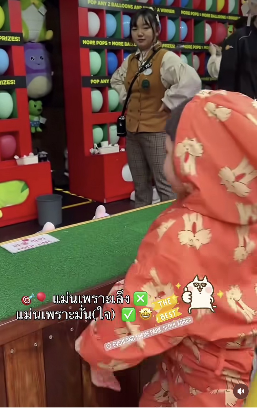 กับลีลาการปาลูกโป่งของ น้องเกล ที่เหมือนจะปาเล่นๆ แบบไม่ตั้งใจ แต่เข้าเป้าอย่างจังด้วยความมั่นใจ ทำเอากองเชียร์กรี๊ดดีใจกันใหญ่เลยจ้า น้องเกล ก็ดูจะดีใจไปด้วยที่ทำให้ถูกใจคนเชียร์