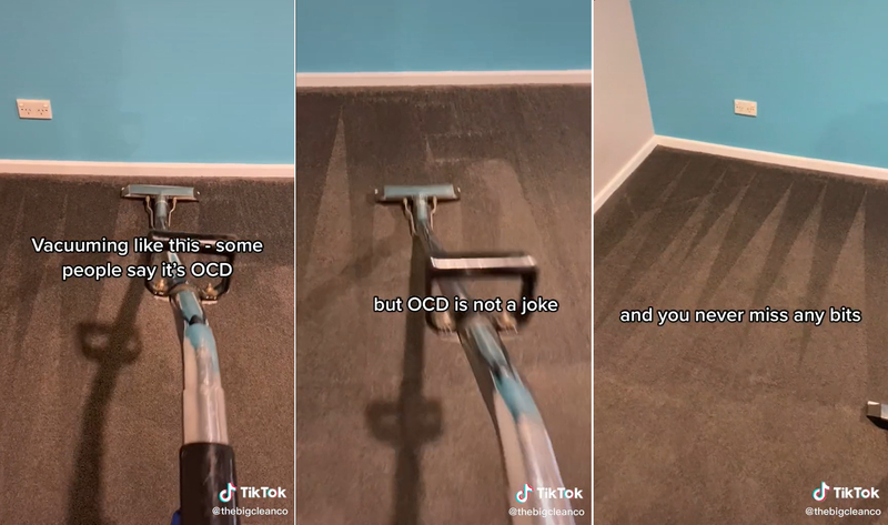 ในคลิปเริ่มต้นด้วยการสาธิตวิธีที่คนส่วนใหญ่มักทำ คือการดันเครื่องดูดฝุ่นไป-กลับแบบเร็วๆ และไม่เป็นระเบียบ