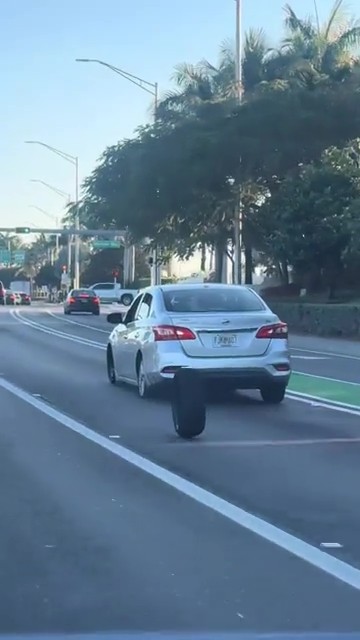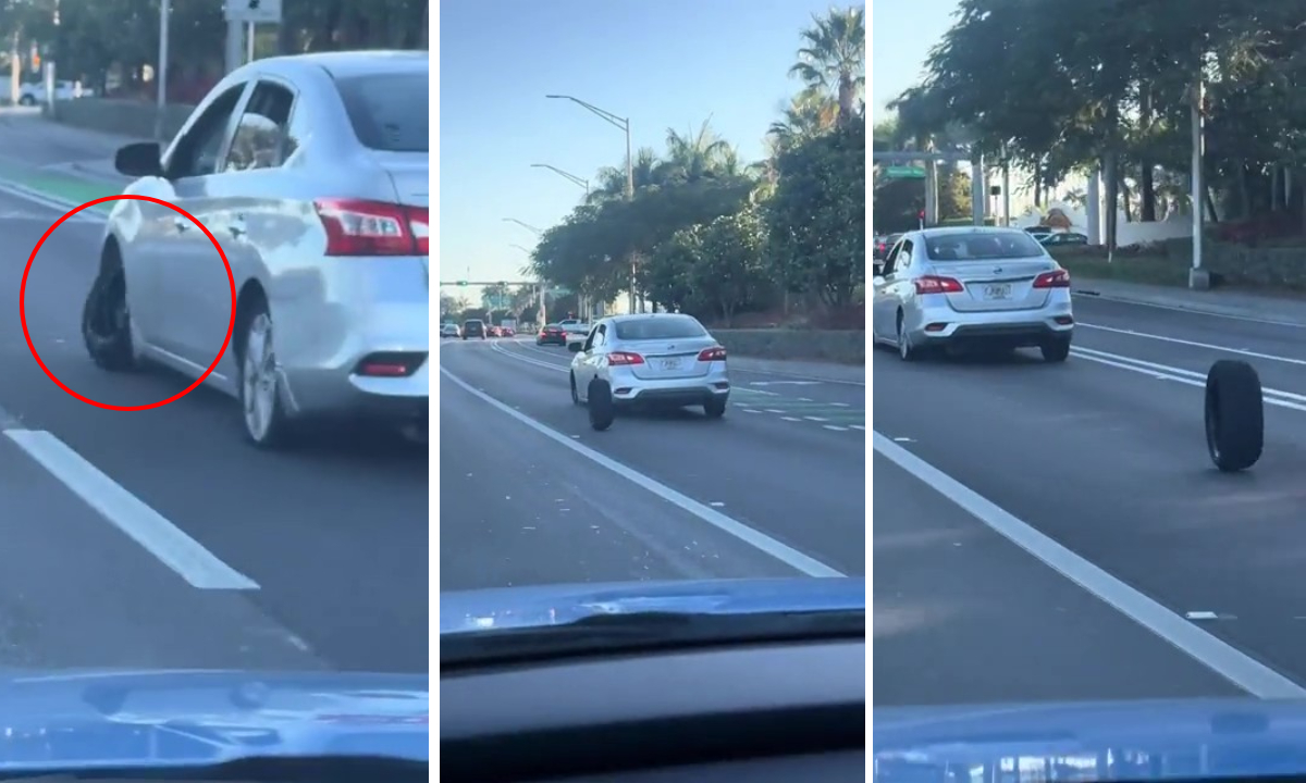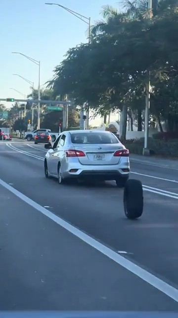 คลิปรอหนูด้วย! ยางเก๋งหลุดมาทั้งล้อ วิ่งดุ๊กๆ ไล่ตามรถ อึ้งซ้ำปฏิกิริยาคนขับยางเก๋งหลุดมาทั้งวง แต่ล้อยังวิ่งฉิว คนขับรู้ตัวหรือยัง?