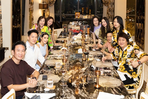 ล่าสุดทั้งคู่เปิดคฤหาสน์ Versace ต้อนรับเพื่อนสนิทอย่าง เบน-กัลยานี กมลวิศิษฎ์ หลานสะใภ้คนสวยของ ชูวิทย์ กมลวิศิษฐ์ และ จอนนี่-ธิติธรรม กมลวิศิษฎ์ ร่วมด้วยเพื่อนสนิทอีกหลายคน อาทิ เอิ๊ก พรหมพร, ฟลุ๊ค เกริกพล ที่ควงแขนมาพร้อมภรรยาคนสวย นาตาลี เจียวรนนท์ และเพื่อนสนิทในแวดวงไฮโซ ร่วมรับประทานอาหารแสดงความยินดี
