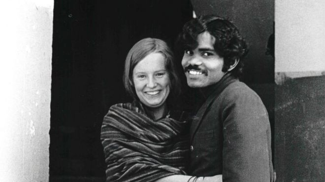 "เธอสวมใส่ส่าหรีในวันที่พบกับพ่อและครอบครัวของผม ผมยังไม่รู้เลยด้วยซ้ำอะไรทำให้เธอกล้าตัดสินใจทำเรื่องแบบนี้ แต่เมื่อเราเป็นหนึ่งเดียวกัน พ่อของผมให้คำอวยพรและเราก็กลายเป็นคู่สามีภรรยากันตามพิธีท้องถิ่น"