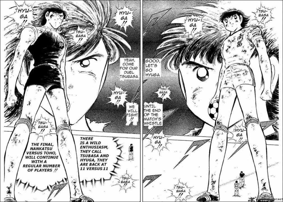 "แต่ตอนที่เปิดตัวฮิวงะ โคจิโร ครั้งแรก เขากลายเป็นคู่ต่อสู้ที่ได้รับความนิยม เนื่องจากผมเองวาดเองก็สนุกเอง เลยอยากลองให้สึบาสะได้สู้กับพวกเขาอีกครั้ง ดังนั้นก็เลยมีแต่โรแบร์โตเท่านั้นที่กลับบราซิลไป"