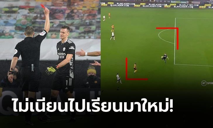 ย้อนไปชมจังหวะที่ แบรนด์ เลโน่ ผู้รักษาประตูของ อาร์เซน่อล ทีมดังในศึกพรีเมียร์ลีก โดนไล่ออกจากสนามในเกมที่ต้นสังกัดบุกไปพบกับ วูล์ฟแฮมป์ตัน ที่สนาม โมลินิวซ์ กราวน์ด เมื่อคืนวันอังคารที่ 2 กุมภาพันธ์ ที่ผ่านมา