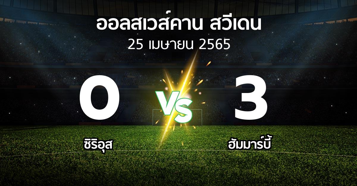ผลบอล : ซิริอุส vs ฮัมมาร์บี้ (ออลสเวส์คาน สวีเดน 2022)