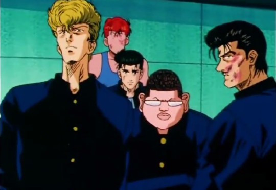 กลุ่มเพื่อนพระเอกถือเป็นสิ่งที่ขาดไม่ได้สำหรับการ์ตูนญี่ปุ่น เช่นเดียวกับมังงะ สแลมดังก์ เมื่อตัวละครกลุ่มนี้ปรากฏตัวตั้งแต่หน้าแรกของเล่มที่ 1 ในฐานะผู้ซ้ำเติมการอกหักครั้งที่ 50 ของ ฮานามิจิ ซากุรางิ ตัวเอกของเรื่อง