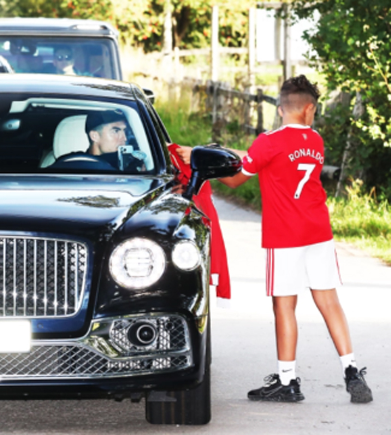 โดยหนนี้ ดาวเตะตัวเก่งวัย 37 ปี ถูกจับภาพได้ว่าหยุดรถข้างทางไม่ไกลจากสนามซ้อมแคร์ริงตัน หลังจากที่เห็นเจ้าหนูรายหนึ่งสวมเสื้อสโมสรหมายเลข 7 ยืนรออยู่ริมถนนเพื่อเฝ้าคอยที่จะได้พบกับแข้งขวัญใจ