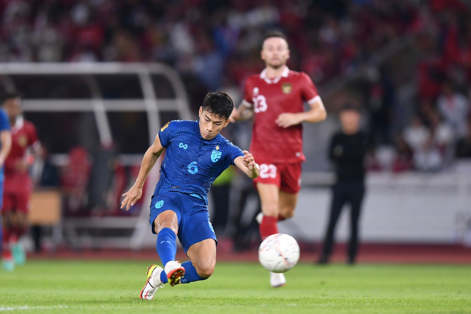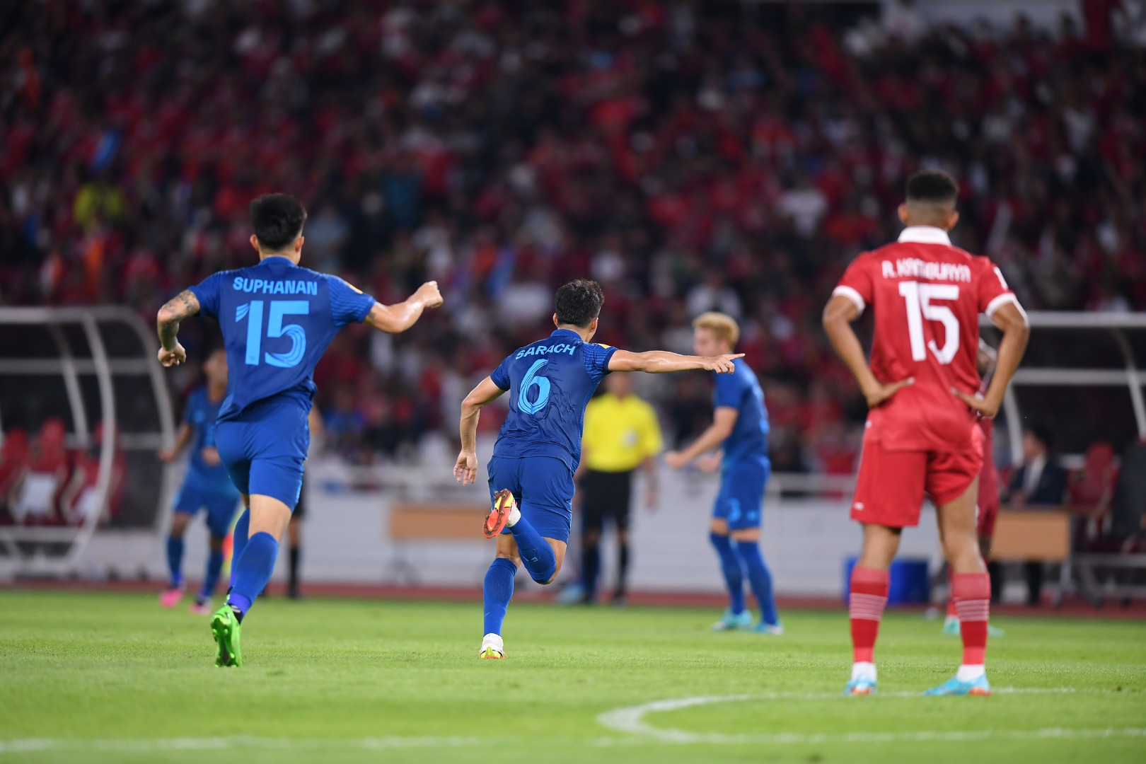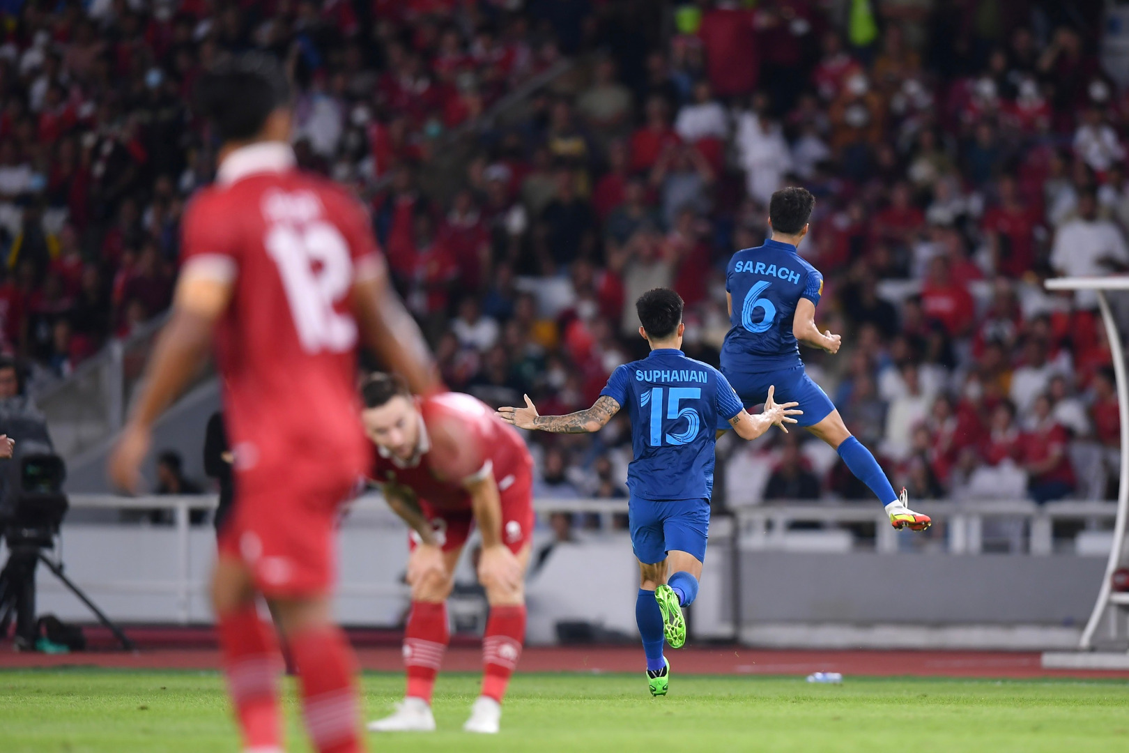 "สารัช" ซัดไกลเซฟแต้ม! ไทย 10 คน บุกเจ๊า อินโดนีเซีย 1-1 รั้งจ่าฝูงต่อวันที่ 29 ธันวาคม 2565 ที่สนามเกโลรา บุง การ์โน ฟุตบอลชิงแชมป์อาเซียน รอบแบ่งกลุ่ม กลุ่มเอ ทีมชาติอินโดนีเซีย เปิดบ้านพบกับ ทีมชาติไทย