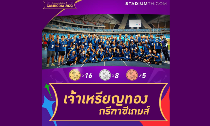 ผลงานชิ้นโบแดง! ไทยนั่งบัลลังก์ราชากรีฑาซีเกมส์ 2023 คว้า 16 ทอง, 8 เงิน, 5 ทองแดง