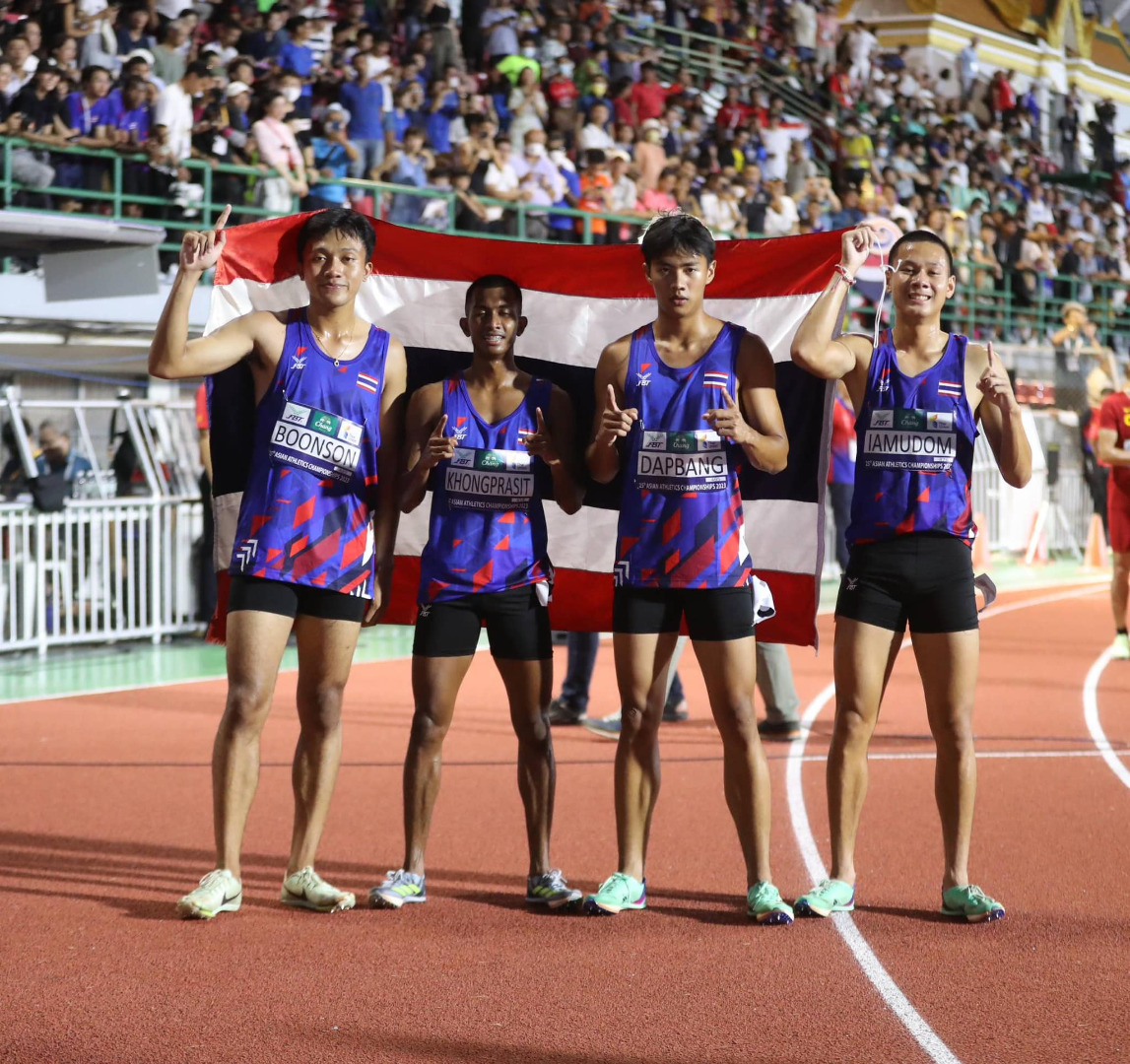 กระหึ่มทวีป! ลมกรด 4x100 เมตรชายไทย ซิวแชมป์เอเชียพร้อมทำลายสถิติ (คลิป)การแข่งขันกรีฑาชิงแชมป์เอเชีย 2023 ครั้งที่ 25 ระหว่างวันที่ 12-16 ก.ค. 66 ณ สนามศุภชลาศัย กรีฑาสถานแห่งชาติ เมื่อวันที่ 12 กรกฎาคม 2566 ที่ผ่านมา