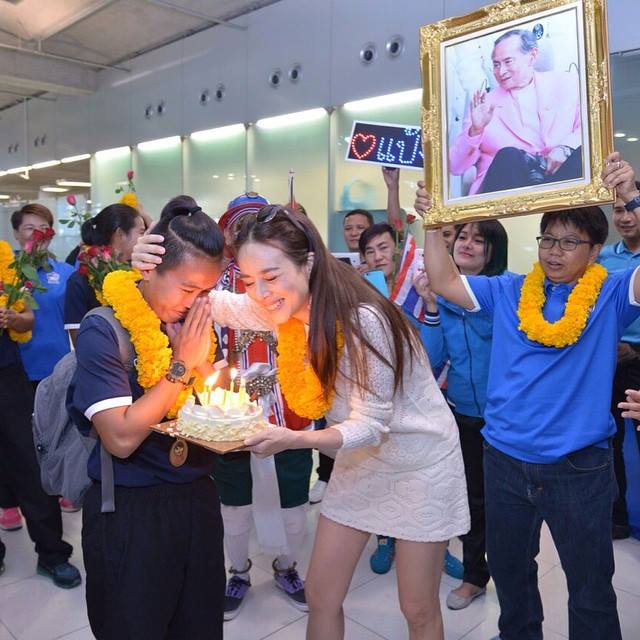 สวย-สปอร์ต-ใจดี.. "มีอะไรแก้ตะคริวได้มั้ย? แพงแค่ไหนพี่จะซื้อมาให้""มาดามแป้ง" นวลพรรณ ล่ำซำ ผู้จัดการทีมฟุตบอลหญิงทีมชาติไทย ได้พานักฟุตบอลหญิงเดินทางกลับมาถึงเมืองไทย