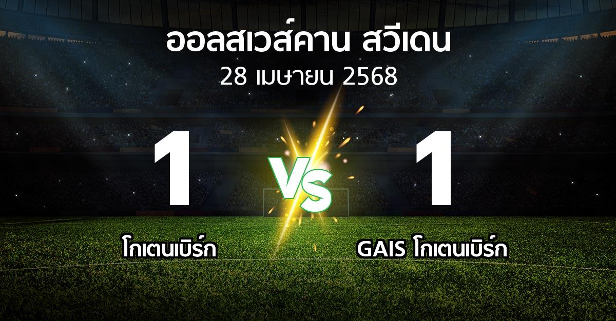 ผลบอล : โกเตนเบิร์ก vs GAIS (ออลสเวส์คาน สวีเดน 2025)