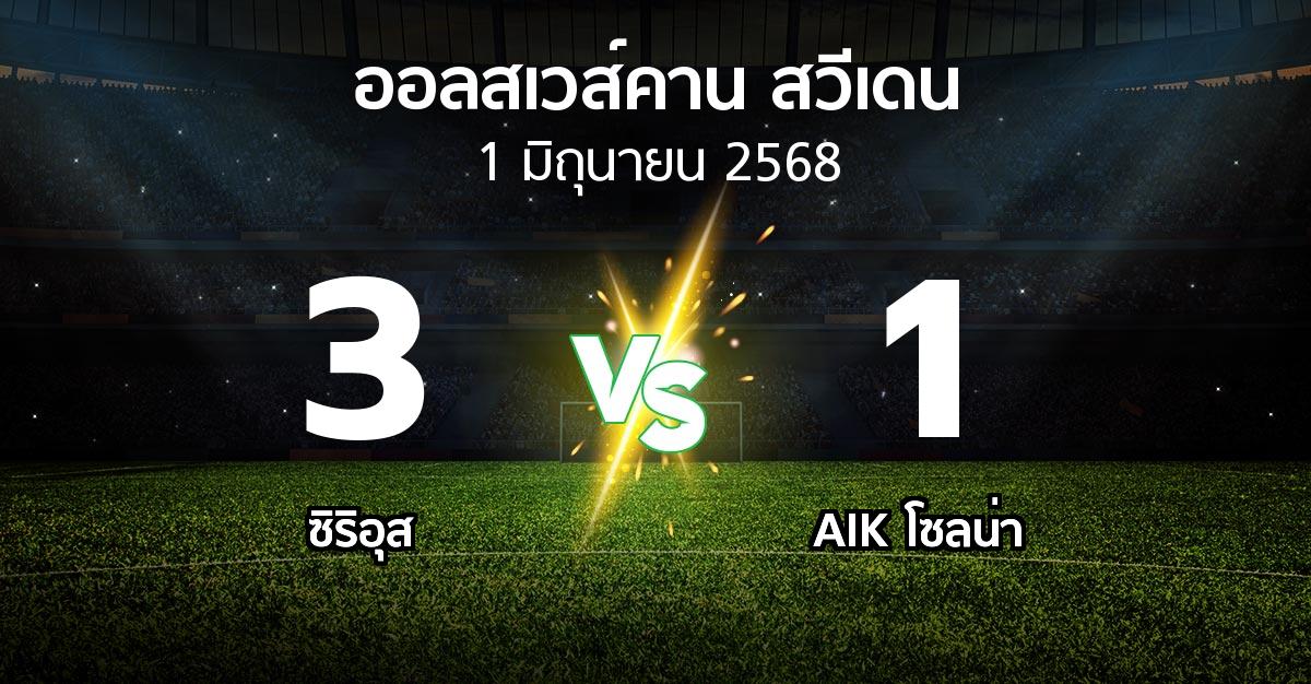 ผลบอล : ซิริอุส vs เอไอเค (ออลสเวส์คาน สวีเดน 2025)