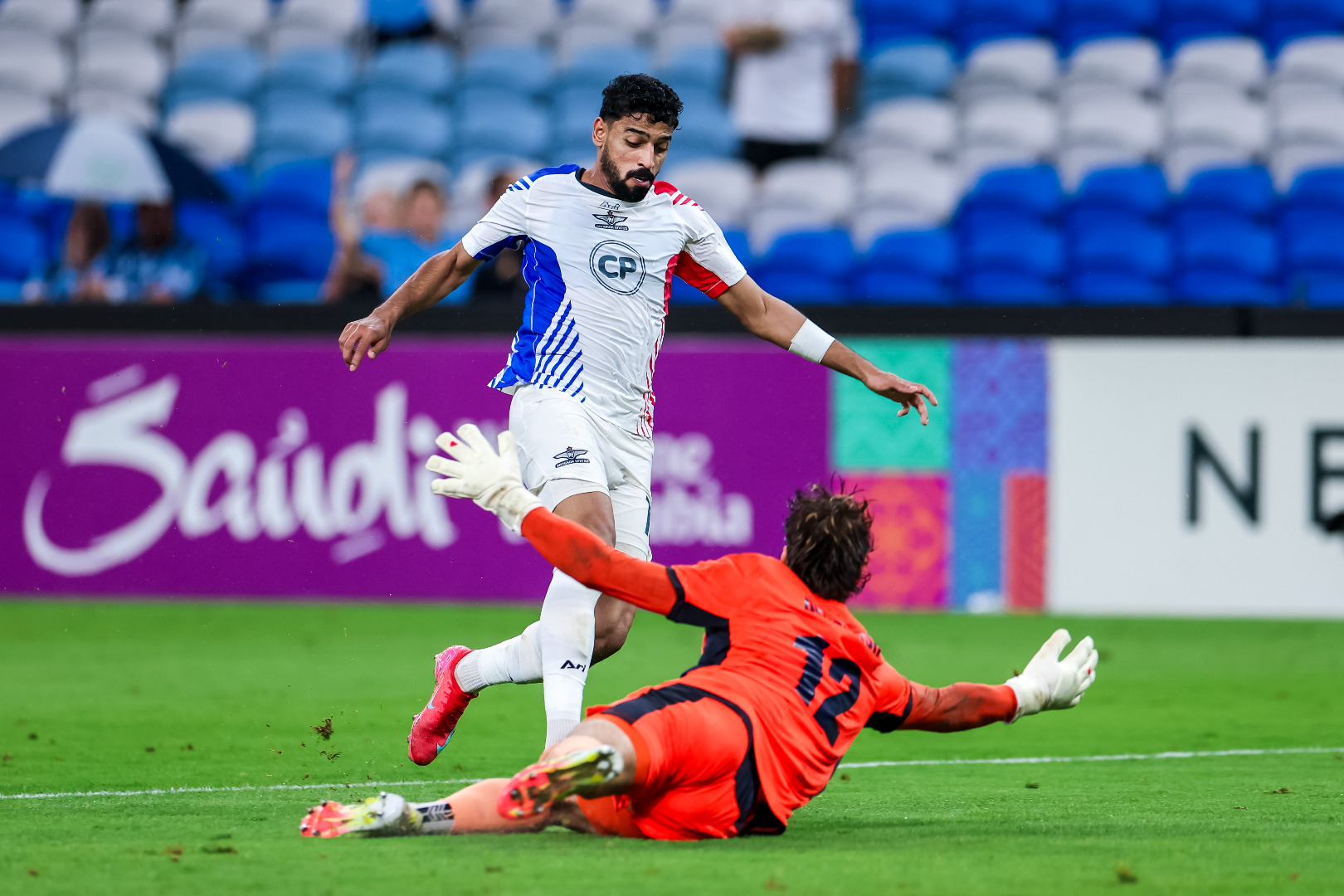 ครึ่งหลังนาทีที่ 49 ฐิติพันธ์ พ่วงจันทรื แทงบอลยาวให้ มูห์เซ็น อัล กัสซานี ได้หลุดเข้าไปดวลเดี่ยวกับผู้รักษาประตู พยายามจะล็อกหลบแต่โดนผู้รักษาสกัดล้มลงไป ผู้ตัดสินเป่าเป็นลูกจุดโทษ ริไชโร ซิฟโควิช ซัดไม่พลาด แข้งเทพบุกมาขึ้นนำ 1-0 ในนาทีที่ 50