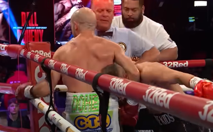 อย่างไรก็ตามเกมการชกจบลงในยกที่ 10 หลังจากที่ ทีเจ โดเฮนี ตัดสินใจขอยอมแพ้ไม่ออกจากมุม หลังจากที่สภาพบอบช้ำหนัก ทำให้ นิก บอลล์ ป้องกันตำแหน่งไว้ได้พร้อมเพิ่มสถิติเป็นชนะ 22 และเสมอ 1 ไฟต์ ไม่เคยแพ้ใคร