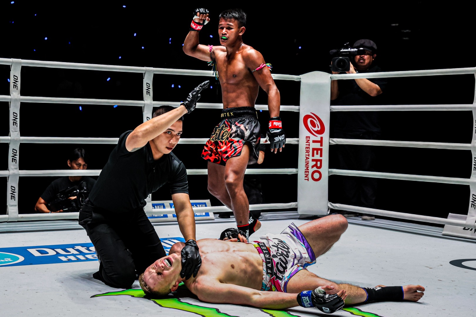 อย่างไรก็ตามเกมการชกมาจบลงในยกที่ 2 เมื่อ บัวเขียว ได้จังหวะปล่อยหมัดชุดเล่นงานลำตัวส่งคู่ชกทรุดกองคามุม แม้จะลุกขึ้นมาได้แต่ก็โดนดักแทงเข่าเต็มท้องหล่นลงไปนอนดิ้นให้กรรมการยุติการชกในที่สุด