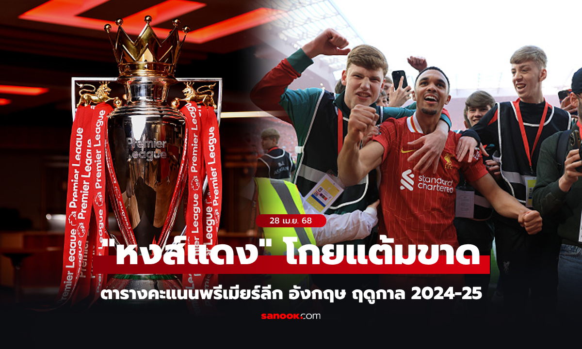 อีก 3 คนยังไม่ได้นะ! พรีเมียร์ลีก กางรายชื่อ "นักเตะลิเวอร์พูล" ที่จะได้เหรียญแชมป์ลีกลิเวอร์พูล การันตีการคว้าแชมป์พรีเมียร์ลีก อังกฤษ ฤดูกาล 2024-25 อย่างเป็นทางการ และทำให้พวกเขากลายเป็นแชมป์ลีกสูงสุด สมัยที่ 20 ในประวัติศาสตร์สโมสรเรียบร้อย
