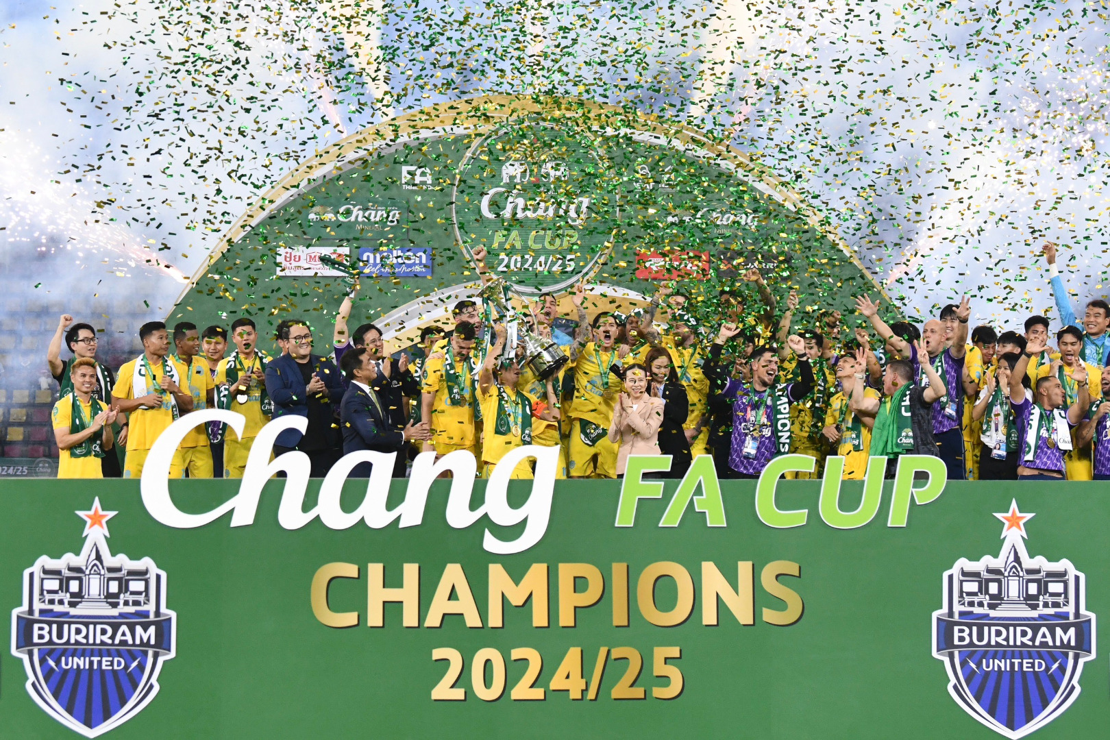 บุรีรัมย์ ยูไนเต็ด ดับซ่า เมืองทอง ยูไนเต็ด 3-2 ผงาดแชมป์ช้าง เอฟเอ คัพ สมัยที่ 7การแข่งขันฟุตบอลช้าง เอฟเอ คัพ 2024/25 รอบชิงชนะเลิศ เมื่อวันเสาร์ที่ 24 พฤษภาคม 2568 ณ สนามม.ธรรมศาสตร์ (รังสิต)