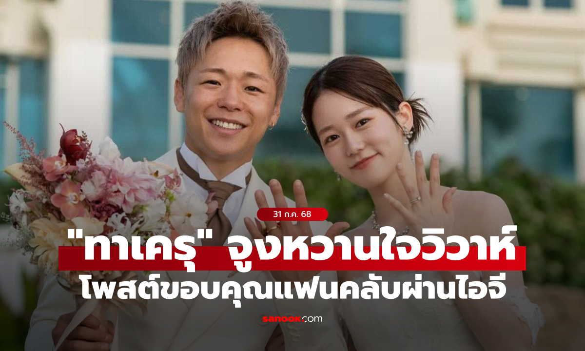 อบอวลรัก! “ทาเครุ” เข้าพิธีแต่งงาน “อาโออิ” สุดหวาน แฟนคลับร่วมยินดีคับคั่ง