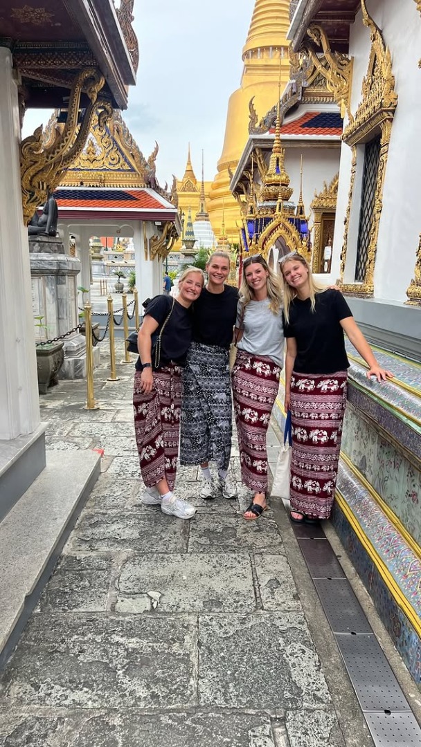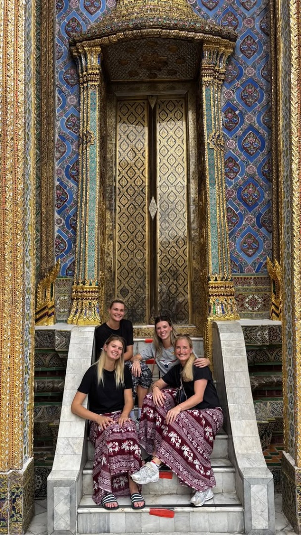 ล่าสุด นิก้า ดาลเดรอป, มาร์ริต แจสเปอร์, บริตต์ บอนเกิร์ตส์ และ เอลีน ทิมเมอร์แมน สี่นักตบลูกยางทีมวอลเลย์บอลหญิง ถือโอกาสเดินทางไปเที่ยวชมวัดพระศรีรัตนศาสดาราม (วัดพระแก้ว) ก่อนอวดภาพในโลกออนไลน์