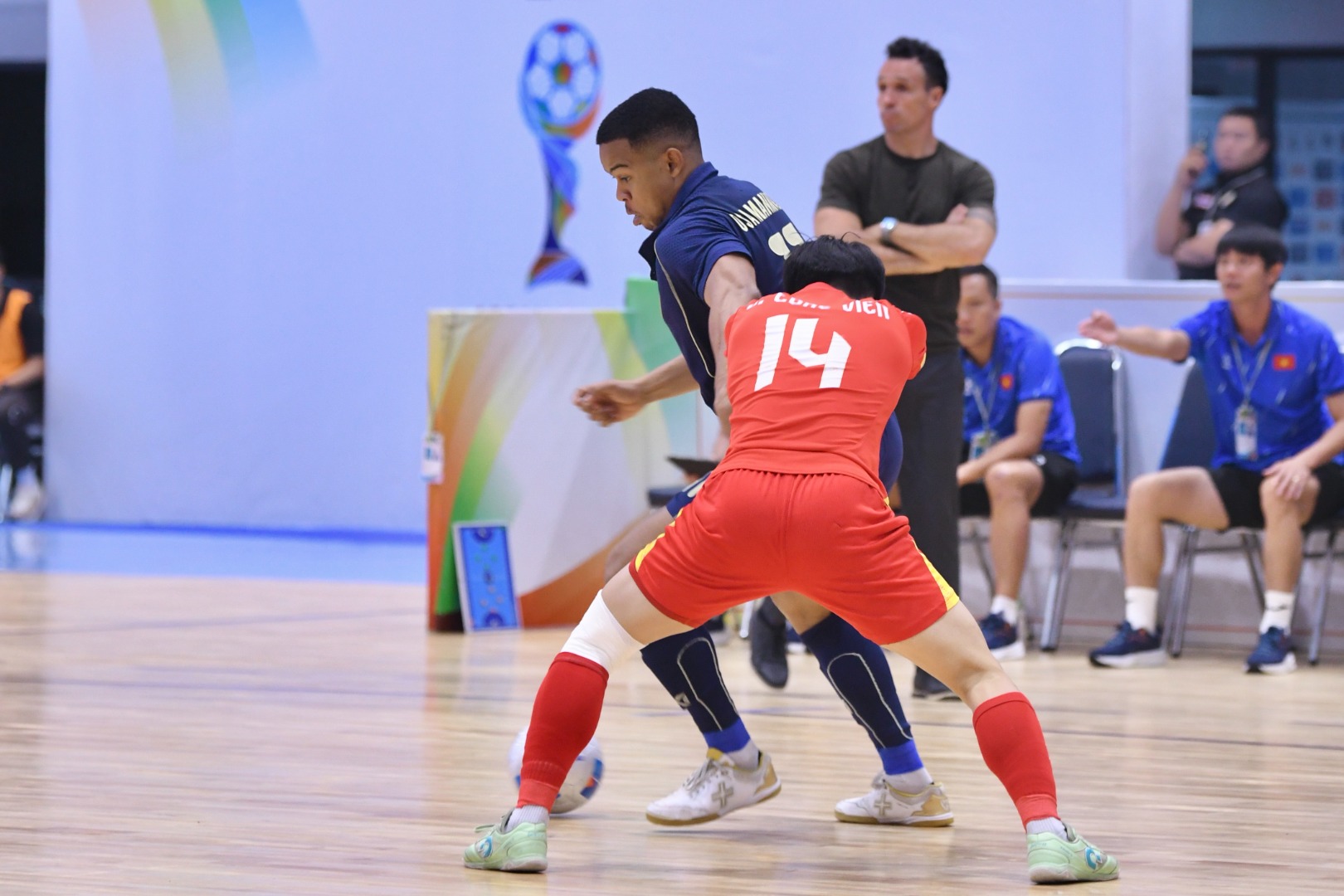 ทั้งไทยและเวียดนามต่างเก็บหกคะแนนเต็มมาในสองเกมแรก หลังชนะติมอร์ เลสเต และ เมียนมา มาได้ทั้งคู่ เกมนี้จึงเหมือนเกมตัดสินแชมป์กลุ่ม โดย โค้ชหมี รักษ์พล สายเนตรงาม ส่ง ธีระวัตร แก้ววิลัย (GK), อิทธิชา ประภาพันธ์ (C), ปาณัสม์ กิตติภาณุวงศ์, มูฮัมหมัด อุสมานมูซา และ อภิวัฒน์ แจ่มเจริญ เป็น 5 คนแรก