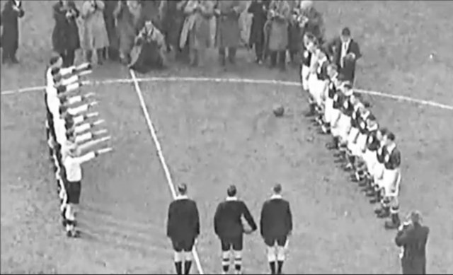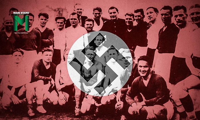 ก่อนเกมเจ้าหน้าที่จากเกสตาโป (ตำรวจลับของนาซี) เข้ามาหาพวกเขาแนะนำว่าคือผู้ตัดสิน และบอกให้ผู้เล่นชูมือขวาในสนามเพื่อทำท่าแสดงความเคารพแบบนาซี