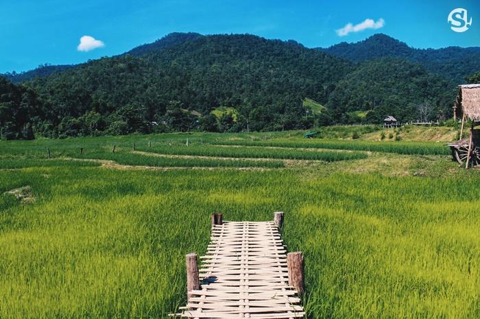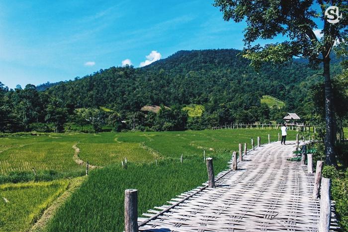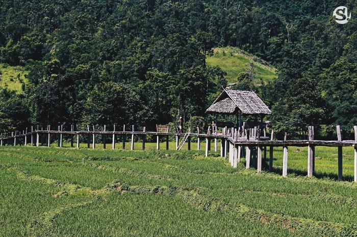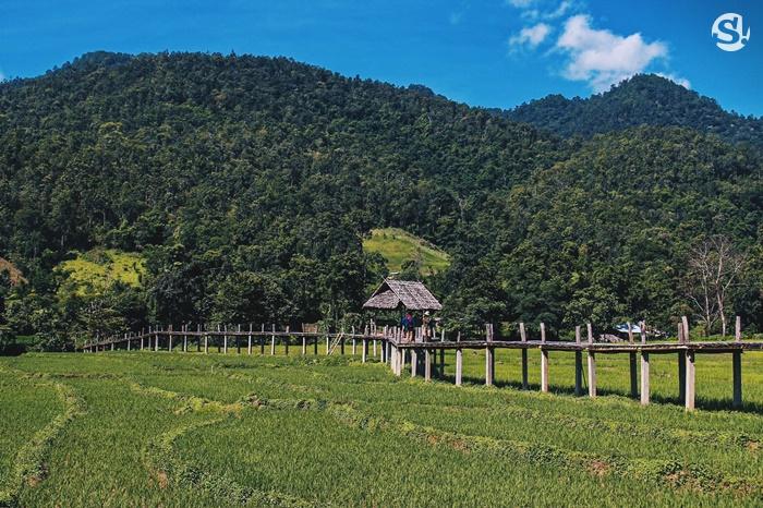 "โขกู้โส่" สะพานบุญกลางทุ่งนา ที่มีความยาวเกือบ 1 กิโล!สะพานโขฏุ้โส่ สะพานบุญแห่งบ้านแพมบก อำเภอปายจังหวัดแม่ฮ่องสอน สวยงามในยามทุ่งนาออกสีเขียวขจี