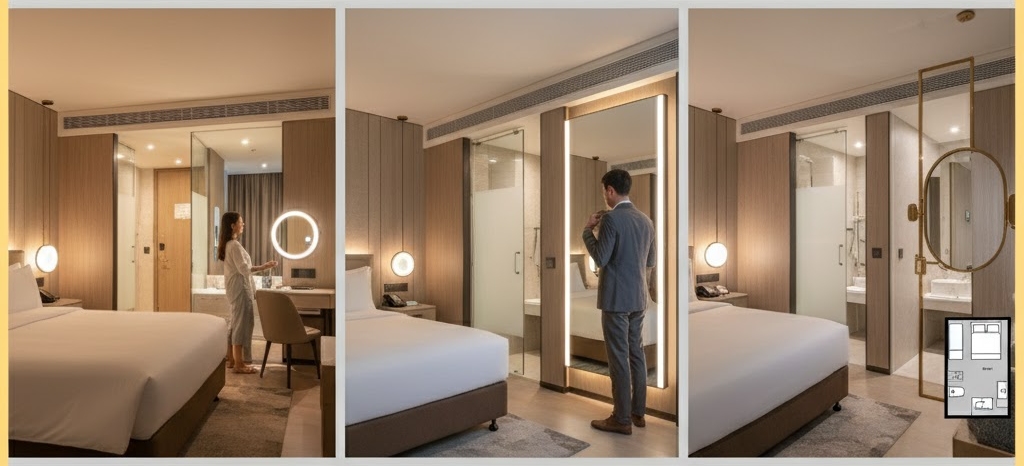 หลายคนอาจเคยสังเกตว่าห้องพักในโรงแรมหลายแห่งมักจะติดตั้งกระจกไว้ตรงบริเวณหน้าห้องน้ำอย่างชัดเจน ซึ่งไม่ได้เป็นเพียงเรื่องของความสวยงามเท่านั้น แต่มีเหตุผลเบื้องหลังที่สำคัญและเป็นประโยชน์มากกว่าที่หลายคนคิด
