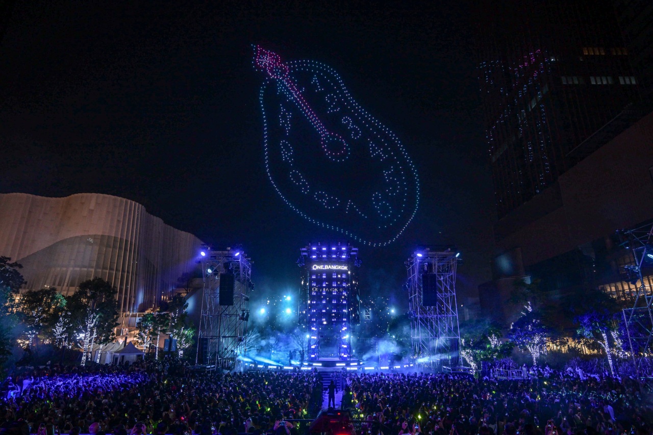 วินาทีประวัติศาสตร์ “The Rise of ONE” เริ่มต้นขึ้นเมื่อโดรนกว่าร้อยลำบินแปรขบวนเป็นรูป "ม้าไฟ" สัญลักษณ์แห่งปี 2569 กลางท้องฟ้ายามค่ำคืน ก่อนที่พลุชุดใหญ่จะถูกจุดขึ้นสว่างไสวไปทั่วกรุงเทพฯ เป็นการเปิดศักราชใหม่ที่สวยงามและน่าประทับใจที่สุด