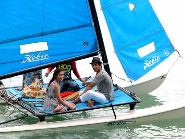 แอฟ : ก็แล้วแต่ว่าไปที่ไหน อย่างไปมัลดีฟส์ก็ไปดำน้ำกัน แต่ล่าสุดแอฟไปฮาวายและเม็กซิโกกับน้องสาว ก็เพิ่งไปเรียนเซิร์ฟมา ส่วนวันนี้ก็ได้มาล่องเรือใบครั้งแรกในชีวิตของแอฟด้วยคะ